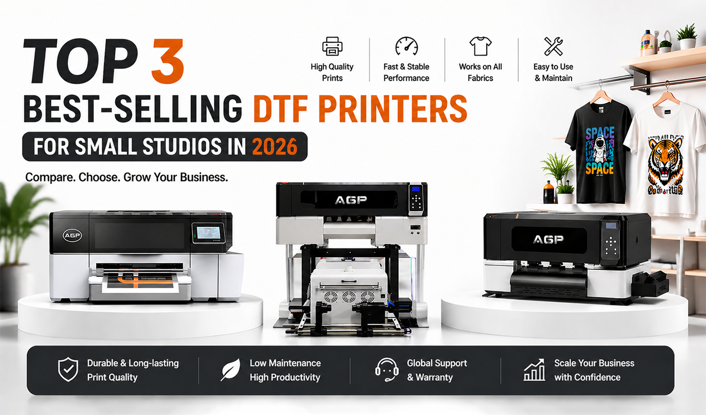 At AGP, we understand the unique needs of small studios. In this guide, we’ll introduce you to the top DTF printers of 2026, designed for performance, reliability, and efficiency. Let’s explore the best options for your business and help you make the right choice!